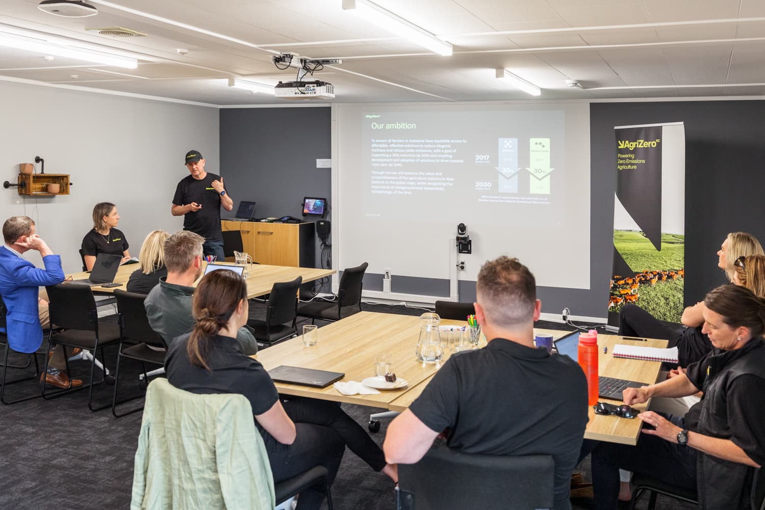 AgriZeroNZ chief executive Wayne McNee presenting to the group