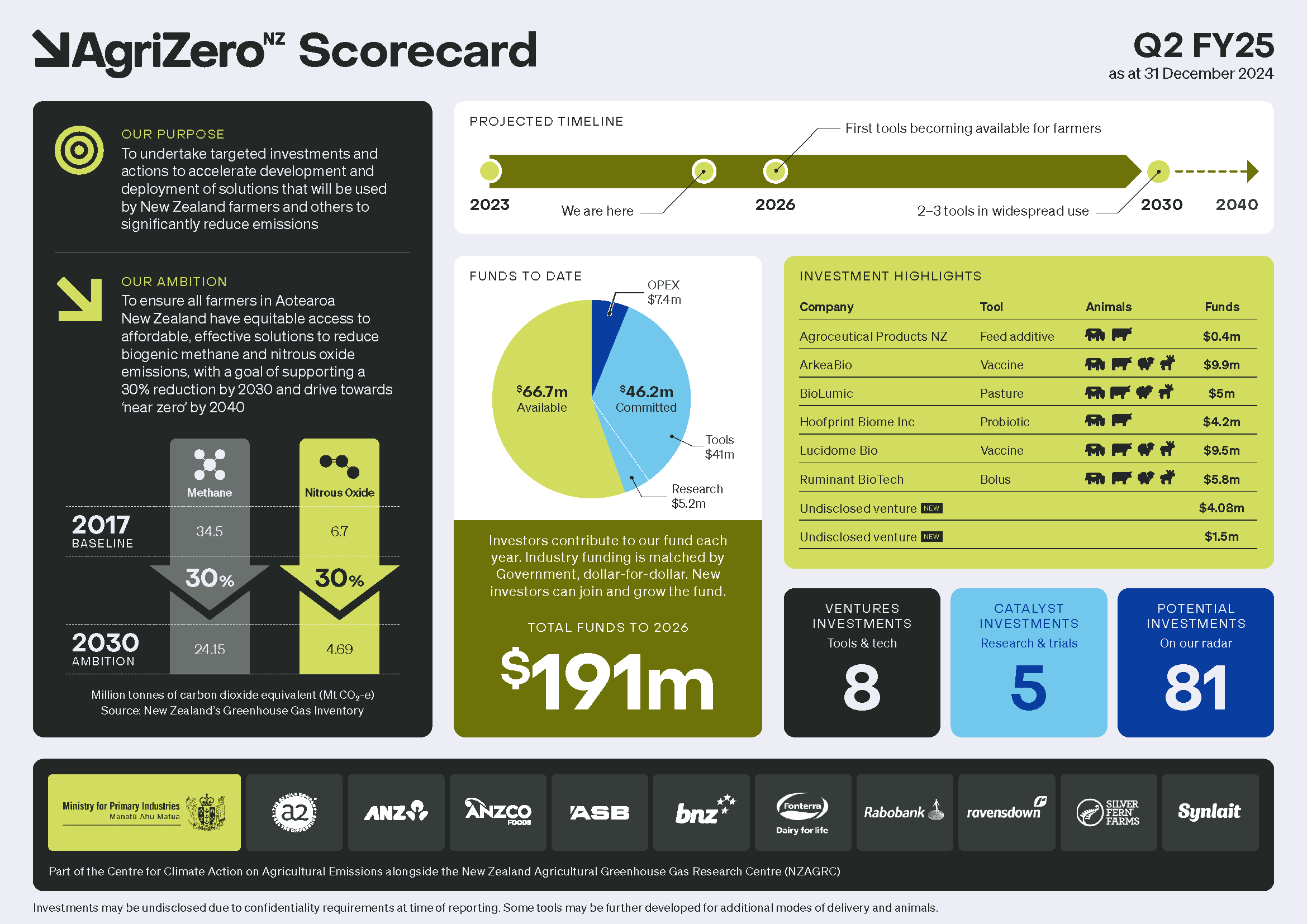 A summary of our progress to get emissions reduction tools into farmers' hands, as at 31 December 2024.