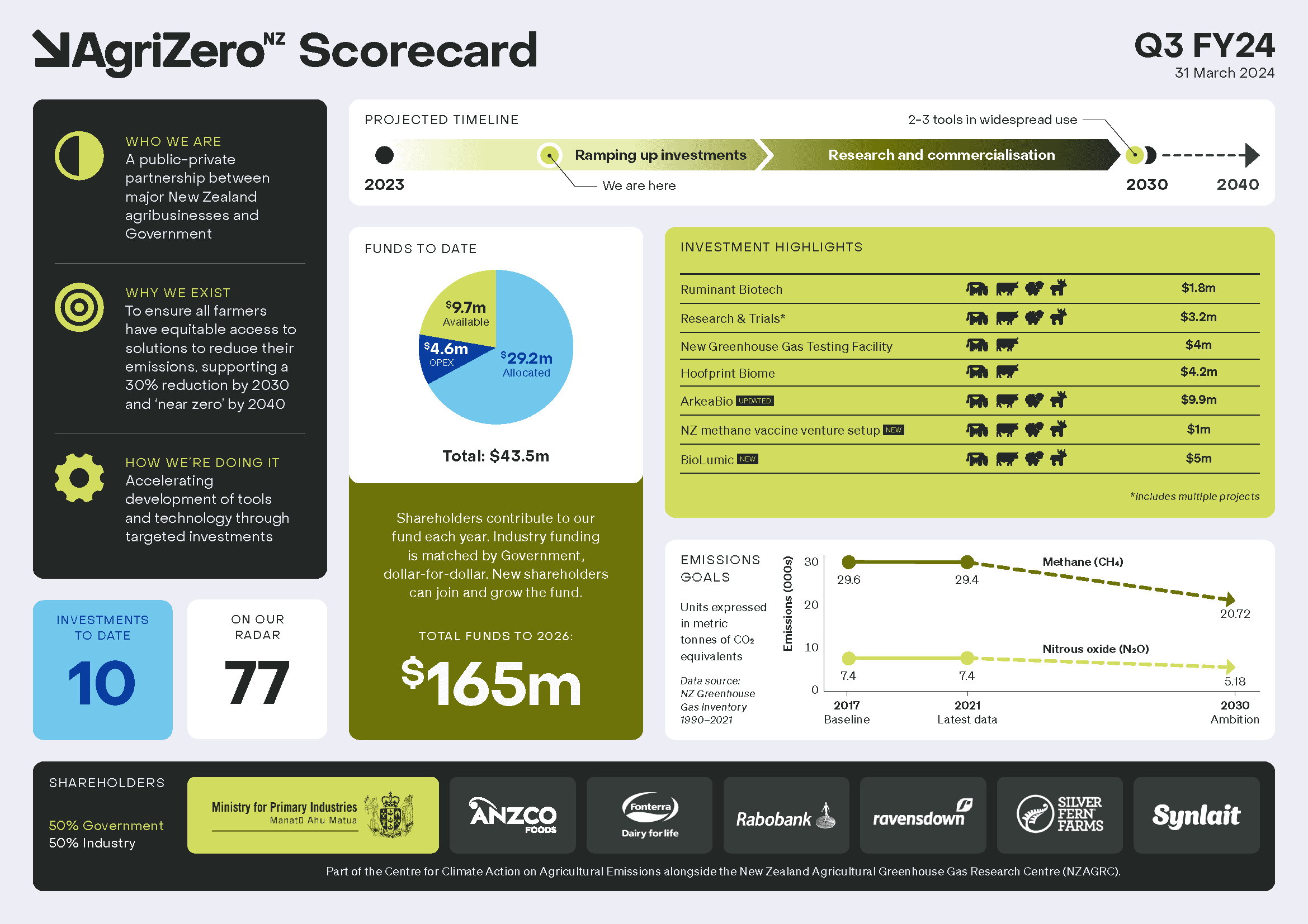 $9.9m investment in a US methane vaccine startup, ArkeaBio (previously noted on Q2 FY24 Scorecard as undisclosed while the funding round was ongoing)