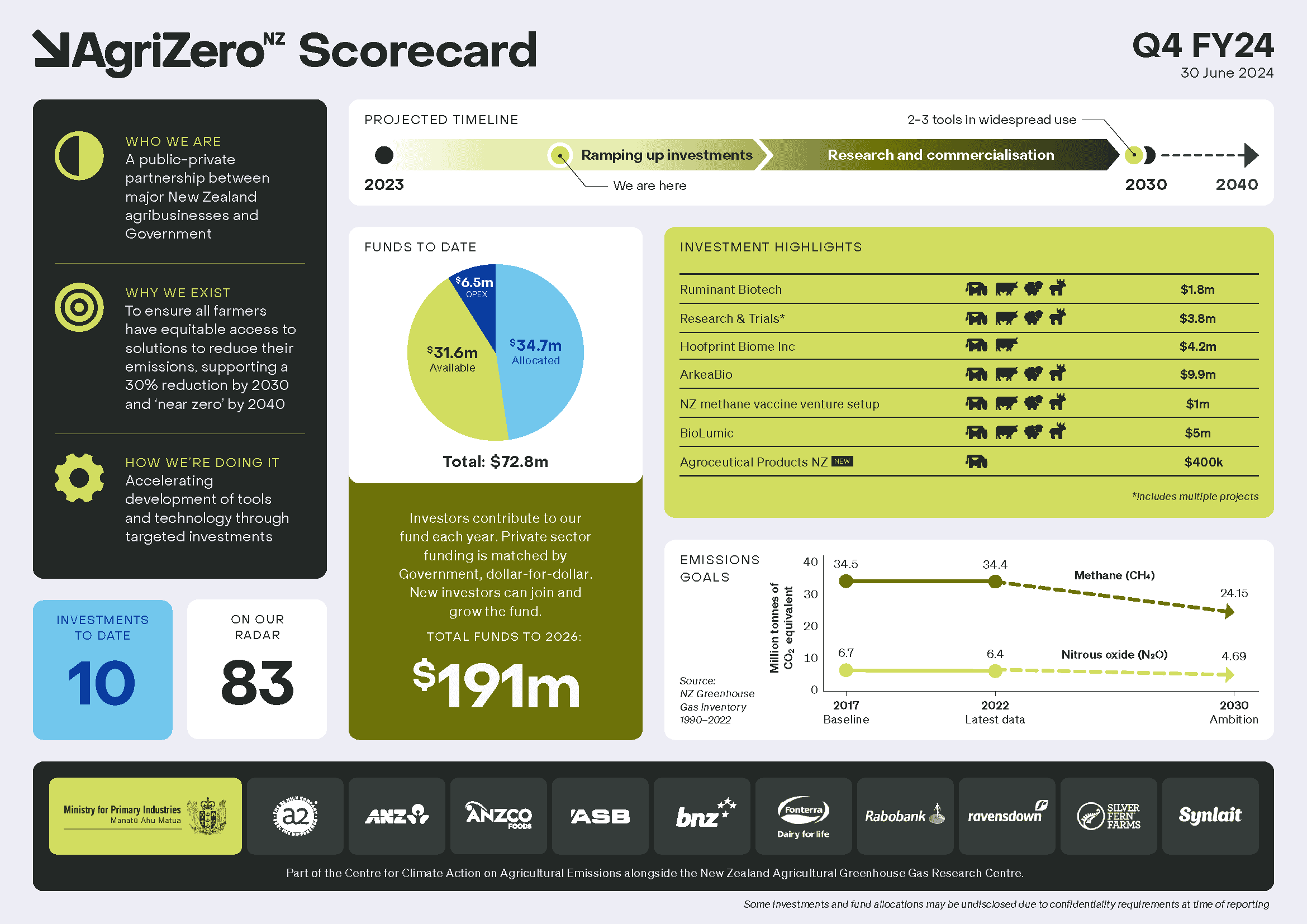 We welcomed The a2 Milk Company, ANZ Bank New Zealand, ASB Bank and Bank of New Zealand as new investors. Their contribution, matched by Government, brings total AgriZeroNZ funding to $191m over our first four years.